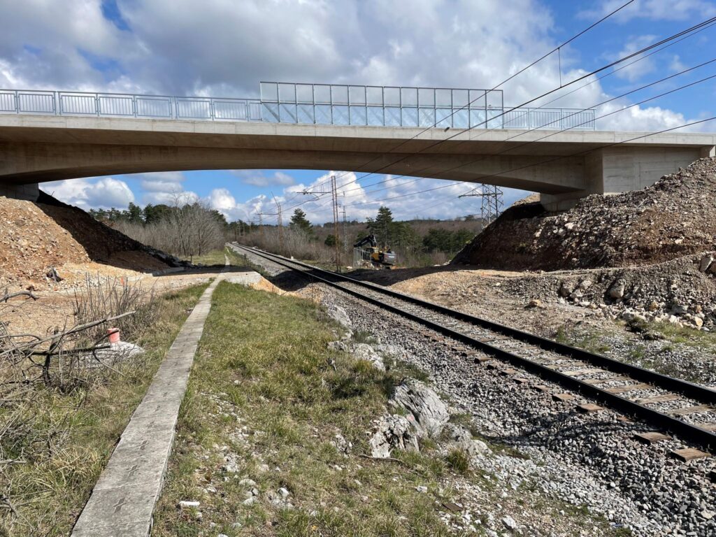 ➡️ železniški nadvoz dolžine 39,30 m (4.1) nad glavno železniško progo Divača–Koper, ki je najpomembnejši objekt na obvoznici